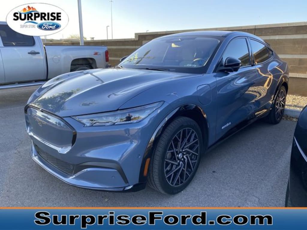 Surprise Ford is Your Pre-Owned Superstore in Arizona! Certified. Automatic Transmission, MP3, **ALLOY WHEELS**, BACK UP CAMERA, **ONE OWNER**, **LOCAL TRADE**, I PHONE INTEGRATION / SYNC, *CLEAN CARFAX*, *ONE OWNER*, *LOCAL TRADE-IN*, 4-Wheel Disc Brakes, ABS brakes, Air Conditioning, AM/FM radio: SiriusXM with 360L, Apple CarPlay/Android Auto, Automatic temperature control, Dual front impact airbags, Dual front side impact airbags, Emergency communication system: 911 Assist, Equipment Group 300A, Exterior Parking Camera Rear, Front dual zone A/C, Heated door mirrors, Heated front seats, Heated Perforated ActiveX Bucket Seats, Knee airbag, Memory seat, Mobile Power Cord (120V/240V), Navigation system: Connected Navigation, Occupant sensing airbag, Overhead airbag, Power door mirrors, Power driver seat, Power Liftgate, Power passenger seat, Rear side impact airbag, SiriusXM Radio w/360L, Speed control, Spoiler, SYNC 4A w/Enhanced Voice Recognition, Turn signal indicator mirrors, Wheels: 19" Shadow Silver-Painted Aluminum. Premium 4D Sport Utility Single-Speed Automatic Electric Motor AWD Vapor Blue Clean CARFAX. Odometer is 5966 miles below market average! 97/85 City/Highway MPG