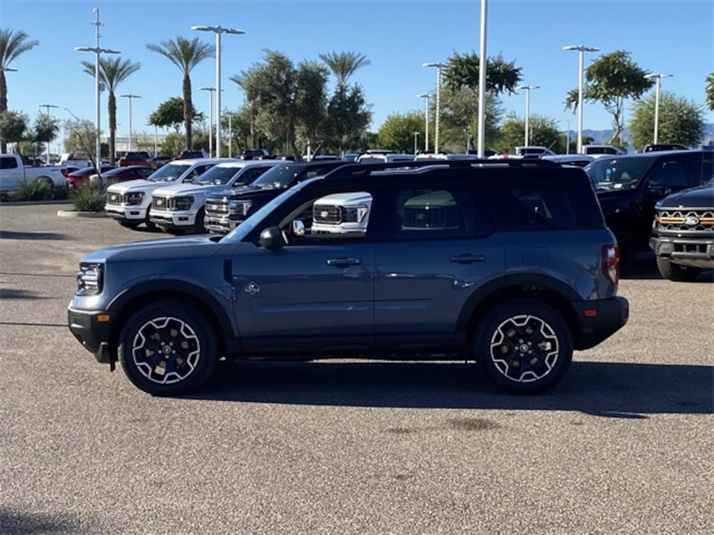 Step into the 2025 Ford Bronco Sport Outer Banks, where rugged capability meets refined style. This new SUV, dressed in a striking Azure Gray Metallic Tri-Coat, is designed for those who crave adventure without compromising on comfort. The 1.5L EcoBoost engine delivers a spirited drive, perfectly paired with an 8-speed automatic transmission for seamless power delivery and efficiency. Whether navigating city streets or tackling off-road trails, the Bronco Sport's advanced 4x4 capabilities ensure you remain in control. Inside, the Outer Banks trim offers a sophisticated cabin with premium materials, making every journey as enjoyable as the destination. The intuitive SYNC® 4 technology keeps you connected, while the Ford Co-Pilot360™ suite of driver-assist features provides peace of mind. With its versatile cargo space, you can easily pack all your gear for a weekend getaway or a spontaneous road trip. The 2025 Ford Bronco Sport Outer Banks is not just a vehicle; it's a lifestyle statement for those who seek to explore the world on their own terms.
