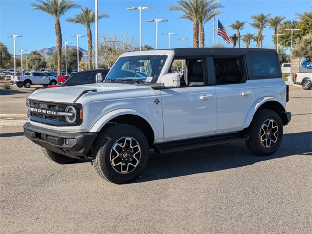 The Oxford White exterior exudes a timeless, rugged charm, capturing attention wherever you go. Designed for the modern explorer, the Bronco Outer Banks features advanced off-road capabilities, including a Terrain Management System with G.O.A.T. Modes (Goes Over Any Terrain), allowing you to customize your drive for sand, mud, snow, and more. Its high ground clearance and durable skid plates ensure protection and capability in the toughest conditions.