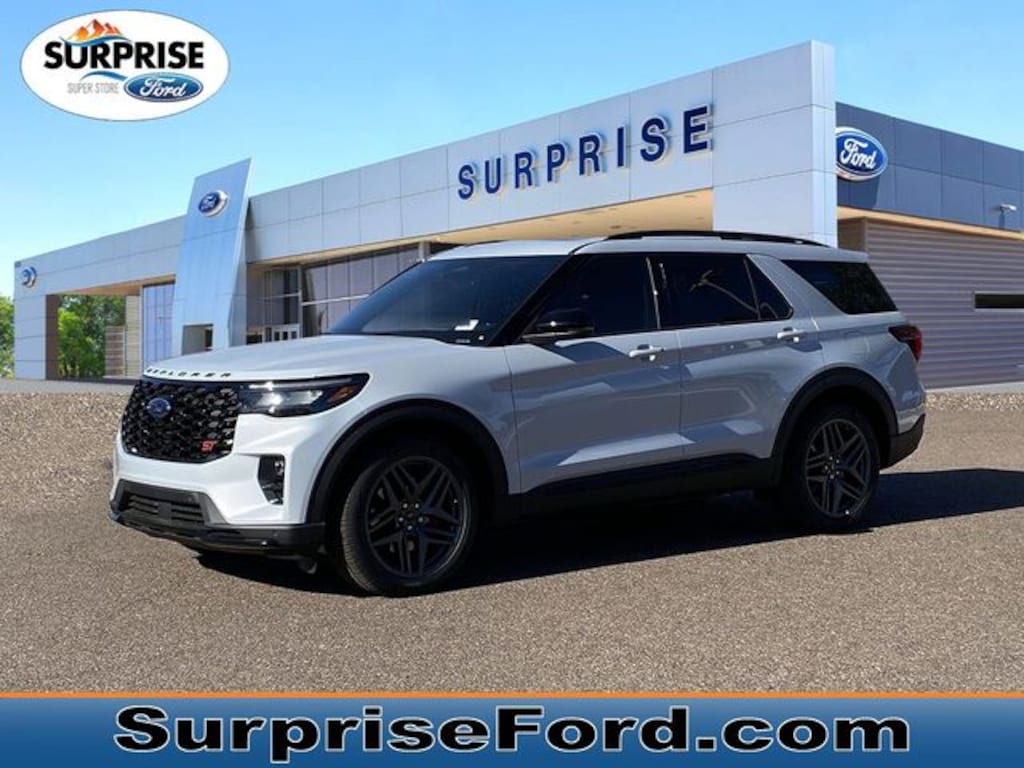 Step into the future with the 2026 Ford Explorer ST, crafted for those who crave adventure and demand excellence. Its 3.0L EcoBoost V6 engine, paired with a 10-speed automatic transmission, delivers exhilarating performance and seamless power, making every drive a thrilling experience. The sophisticated Space White Metallic exterior exudes elegance, while the four-wheel drive ensures confidence on any terrain.