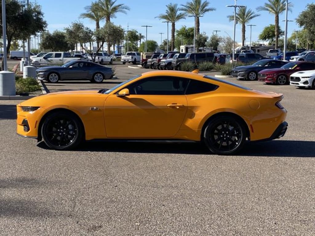 Step into the future of American muscle with the 2026 Ford Mustang GT Premium. This iconic 2D Coupe, dressed in a striking Orange exterior, is powered by a formidable 5.0L V8 Ti-VCT engine, delivering an exhilarating performance that Mustang enthusiasts crave. The 10-speed automatic transmission ensures seamless gear changes, allowing you to harness the raw power of its 8-cylinder engine with precision and control.