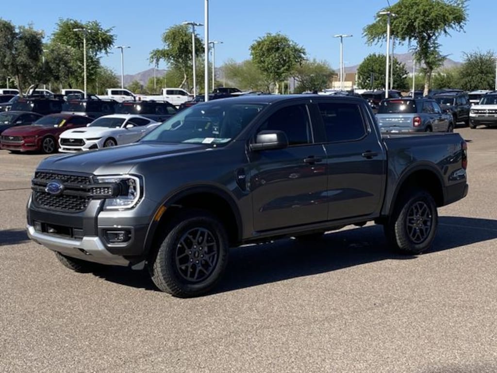 Introducing the 2026 Ford Ranger XLT, a perfect blend of power, technology, and safety for those who crave adventure. The Ecoboost 2.3L I4 GTDI DOHC Turbocharged VCT engine delivers exhilarating performance, while the 10-speed automatic transmission ensures seamless power delivery and efficiency. Designed for the modern explorer, this 4D Crew Cab in stunning Carbonized Gray Metallic offers robust four-wheel drive capability, making it ideal for tackling both rugged trails and urban streets.