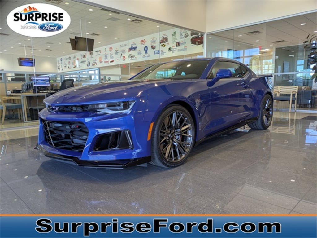 Step into the world of high-octane excitement with the 2023 Chevrolet Camaro ZL1, a masterpiece engineered for those who crave the ultimate driving experience. This used 2D Coupe, finished in the striking Riverside Blue Metallic, combines aggressive styling with unparalleled performance. At its heart lies a formidable 6.2L V8 Supercharged engine, delivering a symphony of power that resonates with every rev. The 6-speed manual transmission offers an engaging and visceral connection to the road, making each drive an exhilarating adventure.