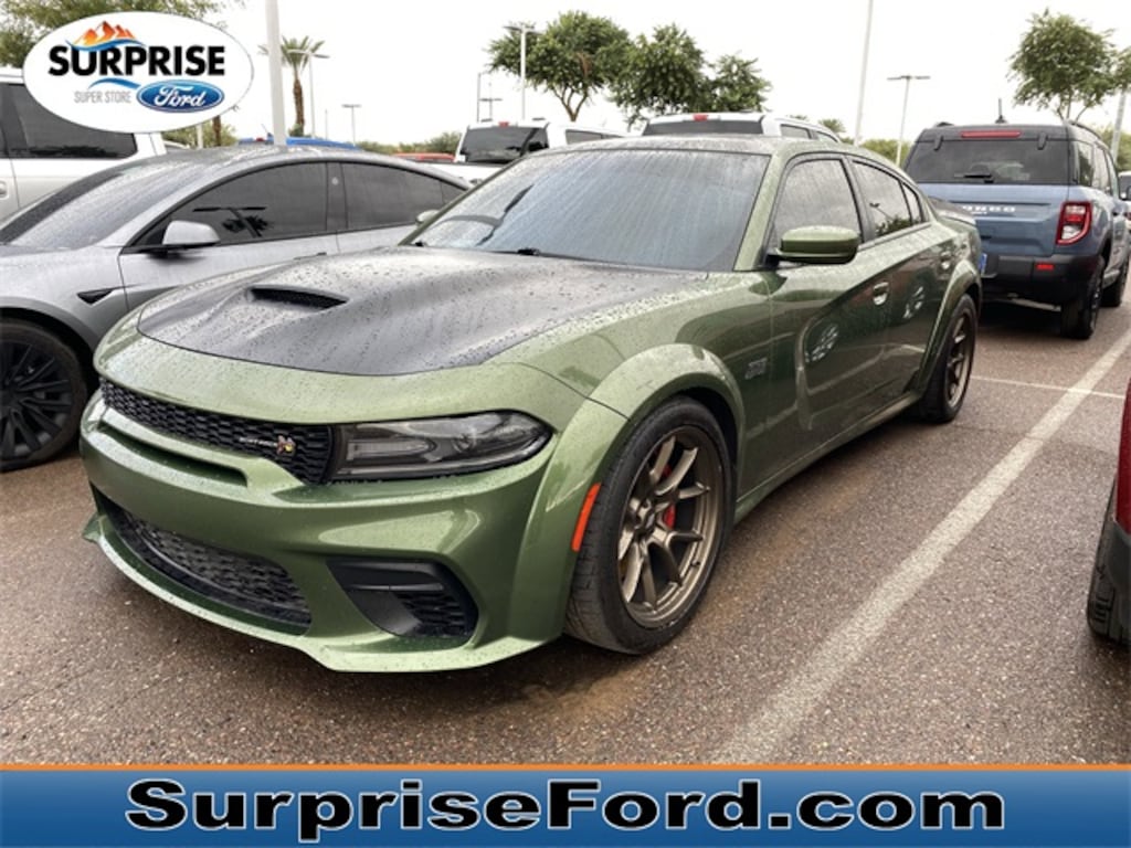Surprise Ford is Your Pre-Owned Superstore in Arizona! **LOCAL TRADE**, *CLEAN CARFAX*, *LOCAL TRADE-IN*, 19 harman/kardon GreenEdge Speakers, Adaptive Damping Suspension, Auto Adjust In Reverse Exterior Mirrors, Auto-Dimming Exterior Driver Mirror, Black-Edged Premium Floormats, Blind Spot & Cross Path Detection, Blind Spot Memory/Power/Heat Mirror, Body Color Fender Flares, Brembo 6-Pot Fixed Front Caliper Brakes, Driver & Passenger Lower LED Lamps, Exterior Mirrors Courtesy Lamps, Front Overhead LED Lighting, harman/kardon Audio Group, harman/kardon GreenEdge Amp, Heated 2nd Row Seats, Illuminated Rear Cupholders, Leather Flat-Bottom Steering Wheel, Performance Shift Indicator, Plus Group, Power Front Driver/Passenger Seats, Power Tilt/Telescope Steering Column, Premium-Stitched Dash Panel, Quick Order Package 21V Scat Pack Widebody, Radio/Driver Seat/Mirrors Memory, Scat Pack Logo Nappa/Alcantara Seat, Surround Sound, Unspecified Tire Brand, Wheels: 20" x 11" Devil's Rim Aluminum, Widebody Competition Suspension, Widebody Package. R/T Scat Pack Widebody 4D Sedan 8-Speed Automatic SRT HEMI 6.4L V8 MDS RWD F8 Green Odometer is 18139 miles below market average!