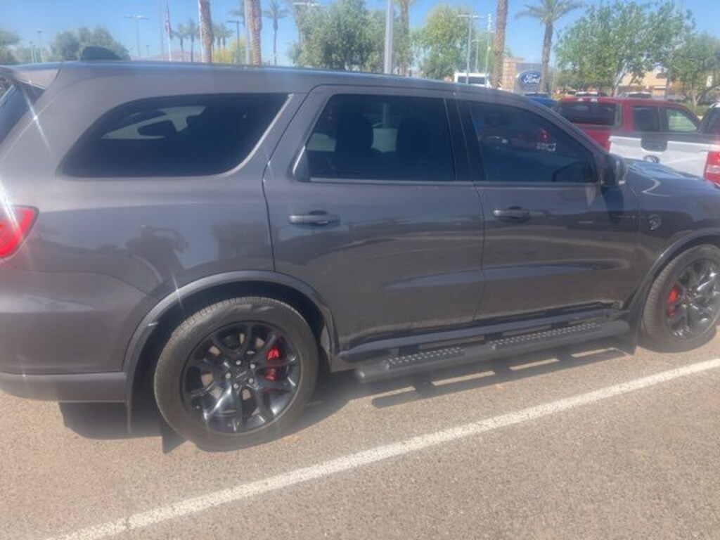 Surprise Ford is Your Pre-Owned Superstore in Arizona! Automatic Transmission, MP3, **ALLOY WHEELS**, BACK UP CAMERA, **LEATHER**, **ONE OWNER**, *Save thousands off of new*, DON'T MISS THIS OPPORTUNITY, *LOW MILES*, *CLEAN CARFAX*, *ONE OWNER*, 4-Wheel Disc Brakes, 7 & 4 Pin Wiring Harness, ABS brakes, Adaptive suspension, Air Conditioning, AM/FM radio: SiriusXM w/360L, Apple CarPlay/Android Auto, Automatic temperature control, Black Package, Blind Spot w/Trailer Detection, Class IV Receiver Hitch, Dual front impact airbags, Dual front side impact airbags, Eclipse Black Exhaust Tips, Emergency communication system, Front dual zone A/C, Gray Metallic Badges, Heated door mirrors, Heated front seats, Heated rear seats, Knee airbag, Leather Trimmed Bucket Seats, Memory seat, Navigation system: TomTom, Occupant sensing airbag, Overhead airbag, ParkView Rear Back-Up Camera, Power door mirrors, Power driver seat, Power Liftgate, Power passenger seat, Quick Order Package 2XV Hellcat, Radio: Uconnect 5 Nav w/10.1" Display, Rear air conditioning, Satin Black Dodge Tail Lamp Badge, Speed control, Spoiler, Trailer Brake Control, Trailer Tow Group IV, Ventilated front seats, Wheels: 20" x 10" Lights Out Aluminum. SRT Hellcat 4D Sport Utility 8-Speed Automatic 6.2L Supercharged HEMI V8 SRT AWD Vapor Gray Clean CARFAX.