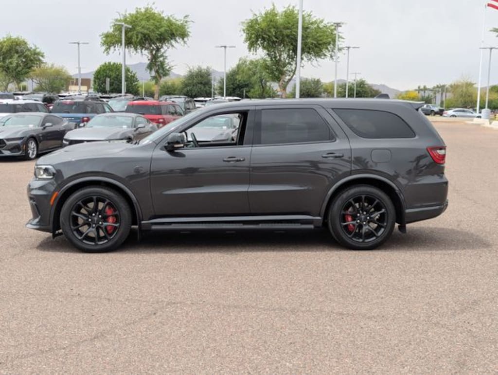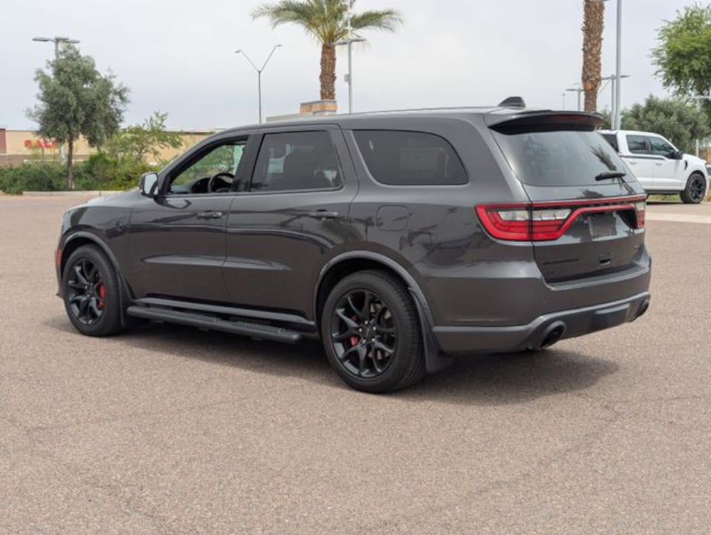 Safety is paramount with blind spot monitoring, rear collision mitigation, cross-traffic alert, and a suite of airbags providing peace of mind. The power liftgate and keyless start add everyday ease, while the sleek rear spoiler and vapor gray exterior announce your presence with confidence. This Durango SRT Hellcat is built for those who crave power without compromise.