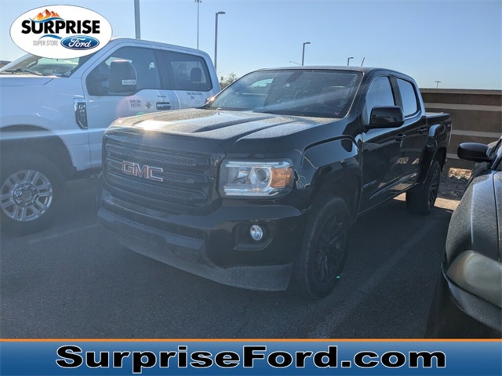 Surprise Ford is Your Pre-Owned Superstore in Arizona! Automatic Transmission, MP3, **ALLOY WHEELS**, BACK UP CAMERA, **BED LINER**, **LOCAL TRADE**, *LOCAL TRADE-IN*, 4-Wheel Disc Brakes, 6-Speaker Audio System Feature, ABS brakes, Air Conditioning, All-Weather Floor Mats, Apple CarPlay/Android Auto, Black Grille w/Body Color Surround, Driver 6-Way Power Seat Adjuster, Dual front impact airbags, Dual front side impact airbags, Elevation Edition, Exterior Parking Camera Rear, HD Radio, Heated door mirrors, Interior Protection Package (LPO), Manual Rear-Sliding Window, Occupant sensing airbag, Overhead airbag, Power door mirrors, Power driver seat, Power windows, Preferred Equipment Group 4LE, Premium audio system: GMC Infotainment System, Radio: AM/FM w/8" Diagonal Color Touch-Screen, Rear step bumper, Remote Vehicle Start System, Rubber Bed Mat, Single-Zone Auto Climate Control Air Conditioning, SiriusXM Radio, SLE Convenience Package, Speed control, Tow/Haul Mode, Trailering Assist Guideline Hitch Guidance, Trailering Package, Wheels: 18" x 8" Multi-Spoke Satin Graphite. SLE1 4D Crew Cab 8-Speed Automatic V6 4WD Onyx Black
