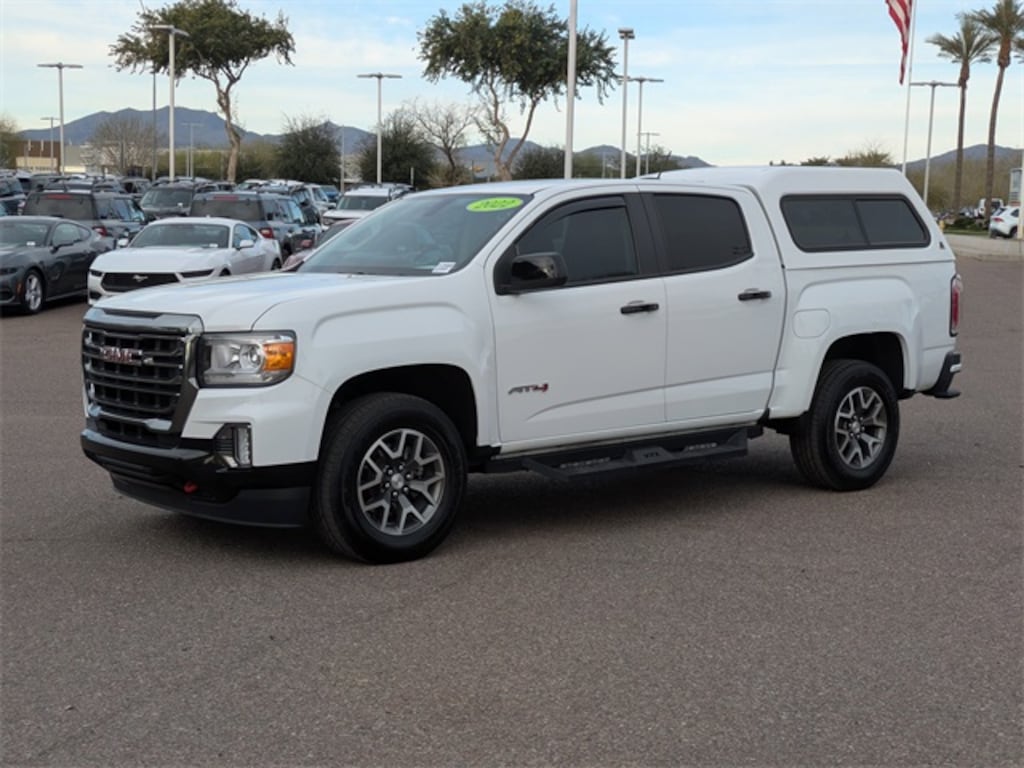 The 2022 GMC Canyon AT4, with its striking Summit White exterior, is the perfect companion for those who crave adventure and demand performance. Its V6 engine, paired with an 8-speed automatic transmission, ensures a powerful and smooth ride, whether you're navigating city streets or tackling rugged terrains. The four-wheel drive and locking/limited slip differential provide exceptional traction and control, making it ideal for off-road excursions. Safety is paramount in the Canyon AT4, featuring a suite of advanced safety technologies like stability control, traction control, and a comprehensive airbag system, ensuring peace of mind on every journey. The interior is designed for comfort and convenience, offering a power driver seat with adjustable lumbar support and a smart device integration system to keep you connected. The Canyon AT4 also boasts a remote engine start and a WiFi hotspot, adding modern convenience to your drive. With its all-terrain tires and aluminum wheels, this used GMC Canyon AT4 is ready to conquer any road. Whether you're heading to the mountains or simply cruising through town, this vehicle promises a driving experience that is both thrilling and secure.