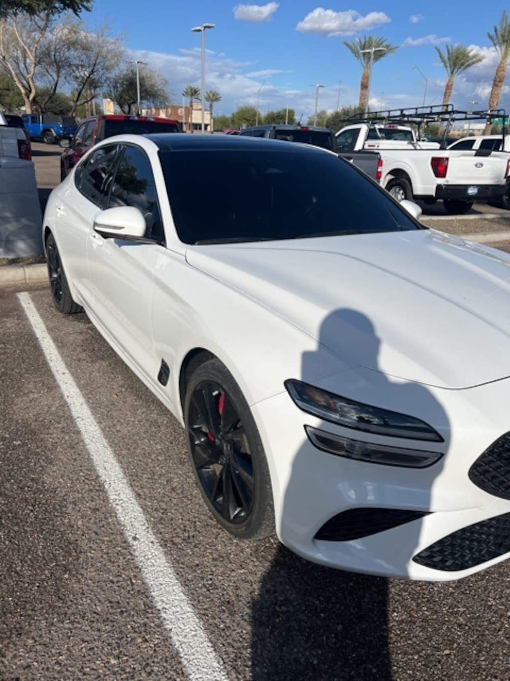 If you are thinking about getting a G70, just do it!! You will not regret your decision, especially if you get the V6 3.3T Lambda engine. This car is fun, fast, and very well built. The craftsmanship and quality feel is amazing. Everything is real; if it looks like that material, it is that material, no fake stuff!! The engine and transmission is amazing. Although the engine is not a rev happy "over squared" design, it is ready at any notice to shoot up the RPMs and move. The Lambda V6 3.3T in this vehicle is by far one of the nicest engines I have driven. A lot of people complain about the 8-speed transmission being a little slow, but I think it shifts perfectly fine and crisp. The interior is built to last. If you don't require much, you will be perfectly at home with almost too much comfort. My favorite thing is the ventilated seats on sweaty days. My main focus of this review is how the G70 drives. As stated before, the engine has tons of power at any moment, is very responsive, and has tons of passing power/acceleration. No one will ride your butt in this car, just smash the gas and watch them disappear in the rear mirrors! It is amazing for highway travel. It hums at a low 1,500rpm @55mph, and about 1,800rpm @80mph. This engine will not scream at you for making it do its job. Not only is it a highway cruiser, but is super fun on the back roads. You almost always run out of real estate before you have to step on the brakes from accelerating (brakes are great too).I wouldn't say it has snap oversteer, but the front-end plows in first before you feel the rear slide out, so you can feel how hard you can push it. Maintenance is tricky, but doable. It requires 7.26qts of oil, which is a decent amount. But, if you are smart, you can get reasonably priced parts, as it is shares a lot of parts with Hyundai/Kia's. To change the oil, you have to remove some under panels, which is annoying, but reasonable. It does have a oil filter cartridge, no spin on type, not a huge fan of those. It also is pure GDI, so carbon build-up is possible on the valves. But with just those few complaints, everything is very accessible in the engine bay for a twin turbo V6. SUMMARY: You will mostly likely buy/lease this car and not want to let it go!… - 5.0