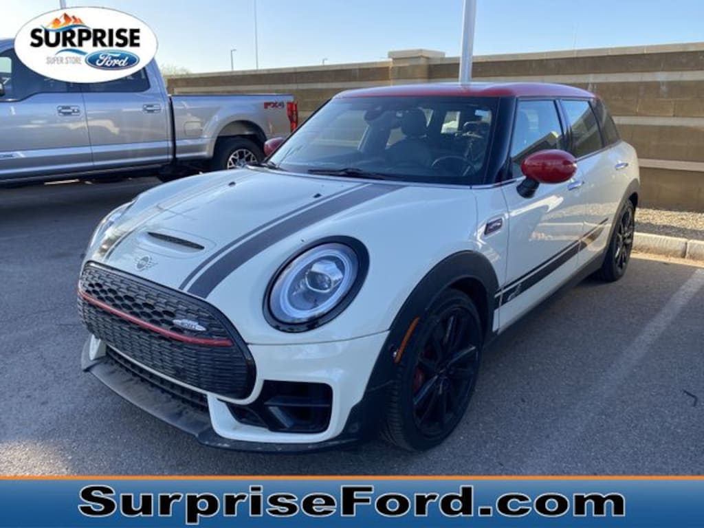 This dynamic 4-door wagon blends a turbocharged 2.0L I4 engine with an 8-speed automatic sport transmission and all-wheel drive, delivering responsive handling and confident traction in all conditions. The performance tires and rear spoiler enhance stability and aggressive road presence, perfect for those who appreciate spirited driving. Inside, heated bucket seats with adjustable lumbar support keep you comfortable on every journey, while the pass-through rear seat offers flexible cargo options for your active lifestyle. Advanced safety features like front collision mitigation, automatic high beams, and multiple airbags provide peace of mind without compromising excitement. The hands-free liftgate and keyless start add convenience, while LED headlights and rain-sensing wipers ensure visibility in any weather. Connectivity is seamless with Bluetooth integration and steering wheel audio controls, keeping you connected without distraction. Finished in striking Pepper White with aluminum wheels, this MINI John Cooper Works Clubman ALL4 Iconic is the perfect companion for those who seek a blend of performance, practicality, and unmistakable style.