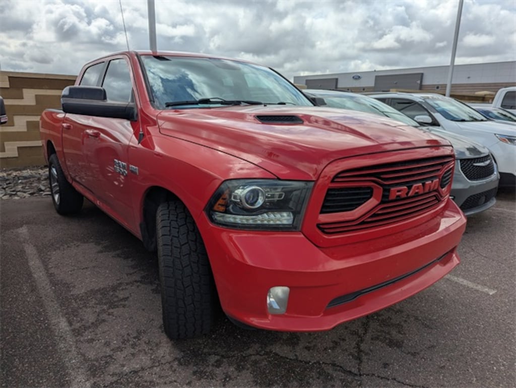 Surprise Ford is Your Pre-Owned Superstore in Arizona! **LOCAL TRADE**, *LOCAL TRADE-IN*, Auto High Beam Headlamp Control, Black Exterior Mirrors, Class IV Receiver Hitch, Convenience Group, Keyless Enter-N-Go, Power Black Trailer Tow Mirrors, Quick Order Package 26L Sport (DISC), Rain Sensitive Windshield Wipers, Remote Proximity Keyless Entry, Trailer Brake Control, Trailer Tow Mirrors, Trailer Tow Mirrors & Brake Group. Sport 4D Crew Cab 8-Speed Automatic HEMI 5.7L V8 Multi Displacement VVT 4WD Flame Red Clearcoat Clean CARFAX. Odometer is 26390 miles below market average!