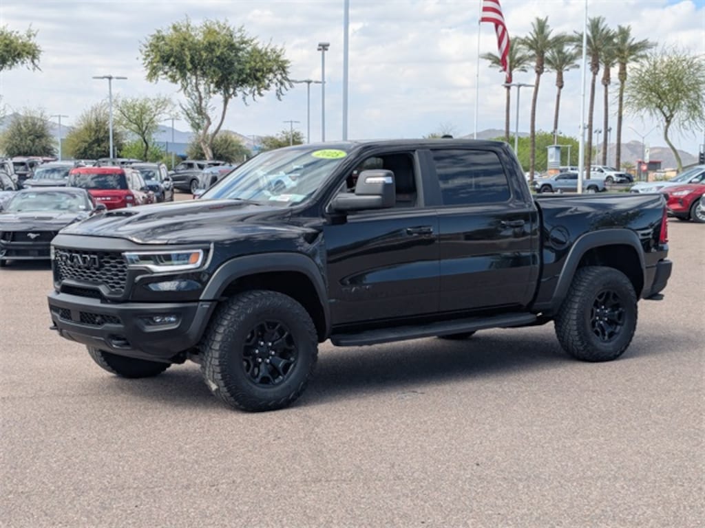Step into the world of the 2025 Ram 1500 RHO, a used masterpiece designed for those who demand more from their drive. With its 3.0L I6 turbocharged engine and 8-speed automatic transmission, this 4D Crew Cab delivers an exhilarating blend of power and efficiency, perfect for tackling both rugged terrains and urban landscapes. The sophisticated Diamond Black Crystal Pearlcoat exterior exudes a commanding presence, while the all-terrain tires ensure you're ready for any adventure. Inside, luxury meets functionality with leather bucket seats, heated front seats, and a heated steering wheel, ensuring comfort in every journey. Stay connected and entertained with the premium sound system, Bluetooth connection, and smart device integration. Safety is paramount, with features like blind spot monitoring, lane departure warning, and front collision mitigation providing peace of mind. Adaptive cruise control and a back-up camera enhance driver convenience, making every drive seamless. The Ram 1500 RHO is not just a truck; it's a statement of strength and sophistication, crafted for those who refuse to settle for anything less than the best.