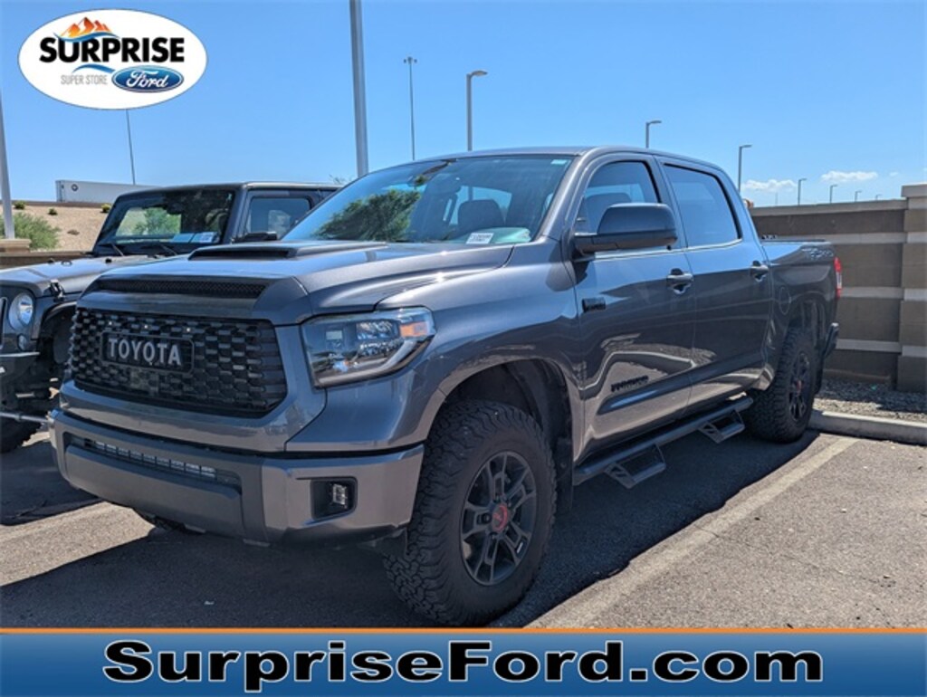 Surprise Ford is Your Pre-Owned Superstore in Arizona! **LOCAL TRADE**, *LOCAL TRADE-IN*, ABS brakes, Active Cruise Control, Air Conditioning, Alloy wheels, Compass, Electronic Stability Control, Heated door mirrors, Illuminated entry, Low tire pressure warning, Power moonroof, Rear window defroster, Remote keyless entry, Traction control. TRD Pro 4D CrewMax 6-Speed Automatic Electronic i-Force 5.7L V8 DOHC 32V LEV 4WD Magnetic Gray Metallic